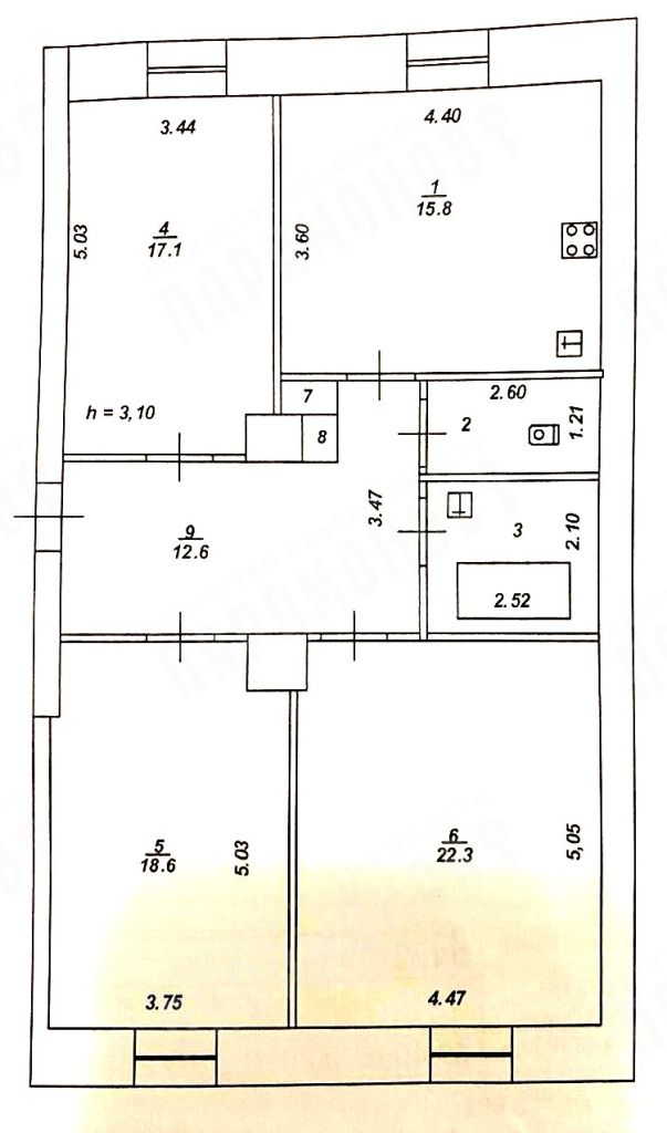 Квартира в отличном состоянии, светлая, чистая! Вся мебель и техника остается. Кирпичный дом "сталинка" - толстые стены, высокие потолки. Общая площадь 95,2 кв.м., кухня 15,8 кв.м. комнаты изолированные 22,3 + 18,6 + 17,1 кв.м., два санузла 5,3 кв.м. и 3,1 кв.м., коридор 12,6 кв.м. Развитая инфраструктура (школа, садики, супермаркеты, поликлиника). Хорошее транспортное сообщение. Один взрослый собственник.
